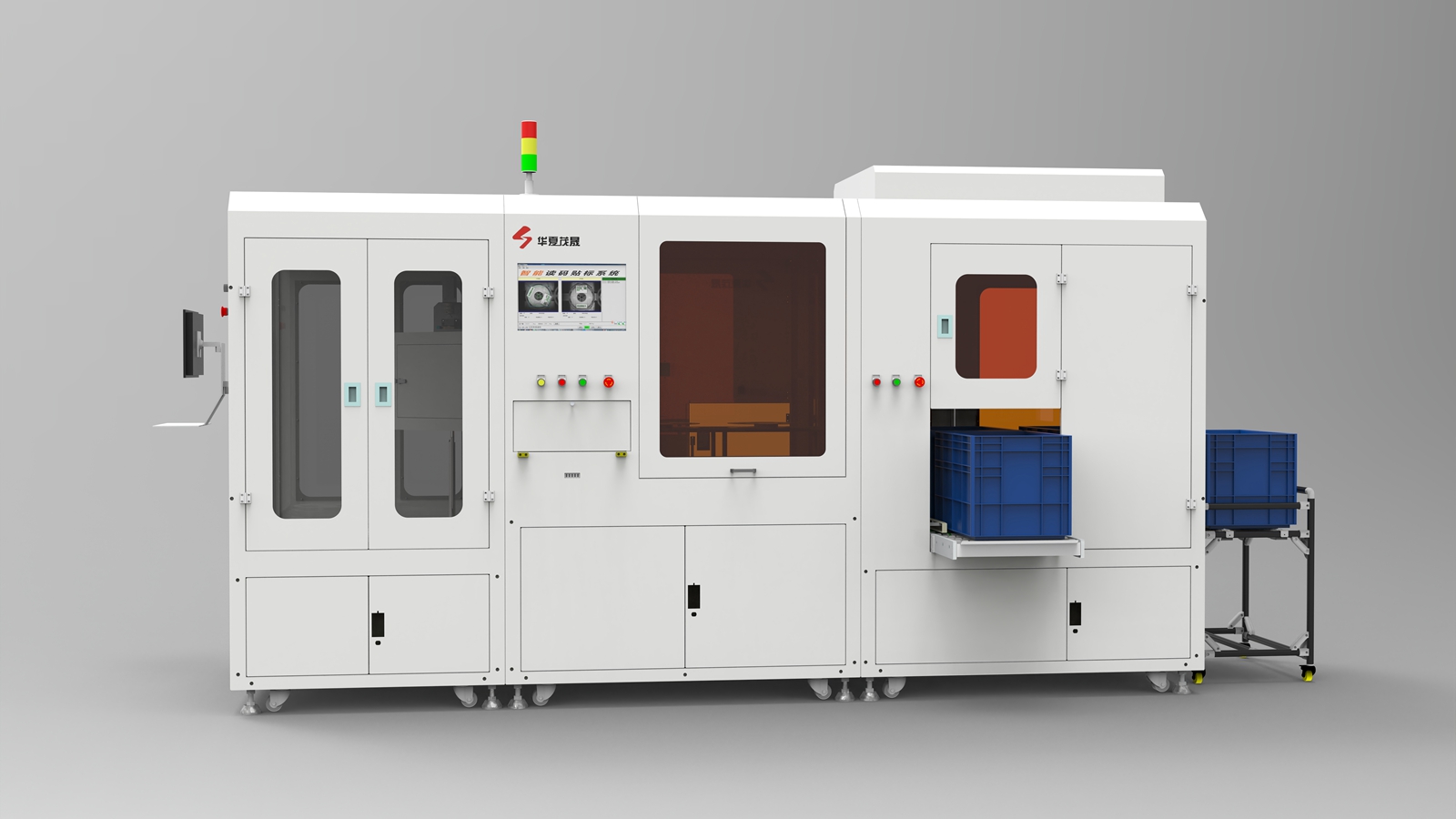 流程:人工批量上料—自動(dòng)讀碼、打印、貼標(biāo)、復(fù)核—人工批量下料。